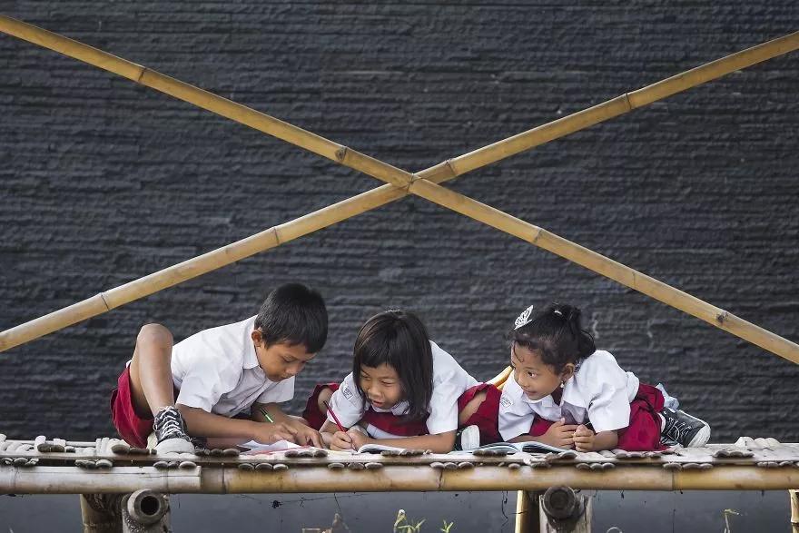 這些作品生動(dòng)的呈現(xiàn)了來自世界各個(gè)國家的孩子們在各種條件下學(xué)習(xí)時(shí)的場景。