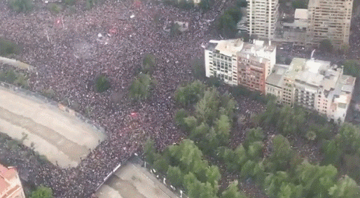 示威者集中在圣地亞哥市中心名為意大利廣場的地標,現(xiàn)場人頭攢動,群情激憤。BBC新聞網形容,這是智利于上世紀九十年代“民主化”以來最大規(guī)模的一次游行。