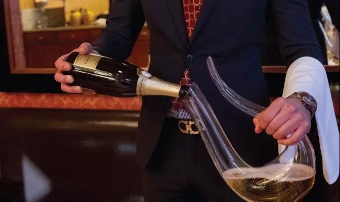 倒酒時,需讓酒沿45°角的方向緩慢進入醒酒器中。