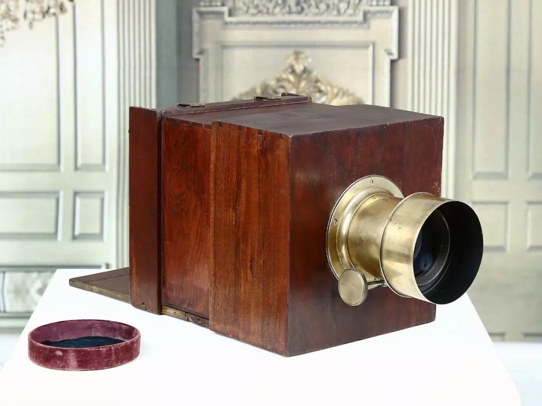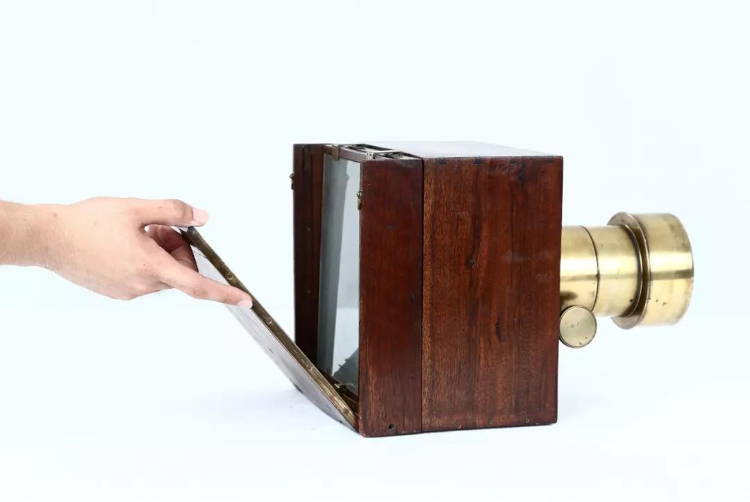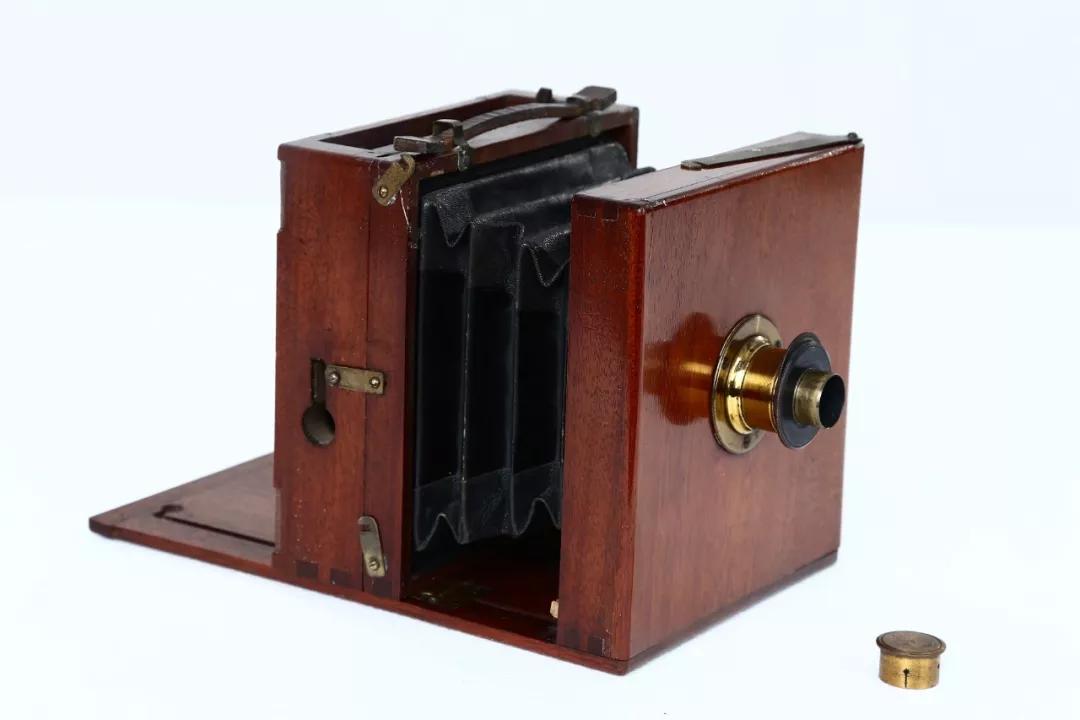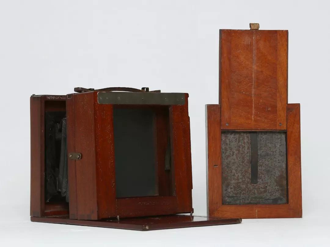 如果按機(jī)身材料分類(lèi),有木制和金屬制兩種;如果按調(diào)焦方式分類(lèi),有固定基座滑箱式、尾板滑箱式和皮腔折疊式多種;如果按照片形式分類(lèi),有普通照相機(jī)、立體照相機(jī)(1852 年法國(guó)人阿基利·基內(nèi)首創(chuàng),畫(huà)幅 120×240mm);如果按畫(huà)幅分類(lèi),既有6.5×8.5 英寸全版的,也有半版、1/4 版甚至 1 英寸畫(huà)幅的。