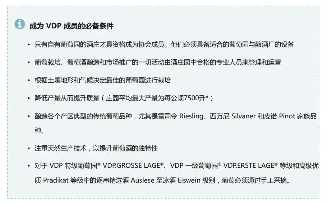 想要加入這個聯(lián)盟絕非易事。VDP聯(lián)盟實行邀請制,酒莊無法自行提出“入會”申請,只有品質(zhì)得到國際市場認可并被足夠數(shù)量的VDP成員推舉時,才可收到邀請。此外所有酒莊初次被VDP錄取認證時需通過審核,之后每5年需經(jīng)歷一次嚴苛的復審。