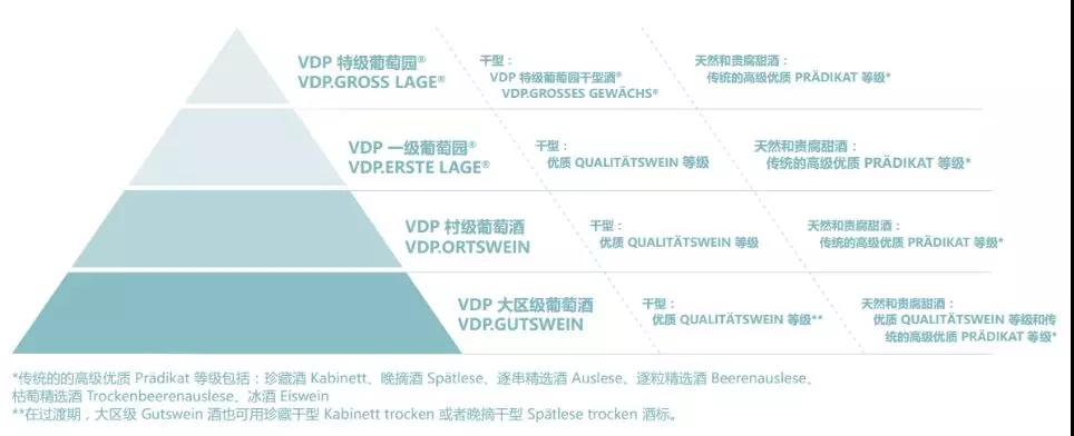 VDP聯(lián)盟規(guī)定,無論采收時最低糖含量為多少,只要做成干型,則統(tǒng)一降級到Qualit?tswein級別。