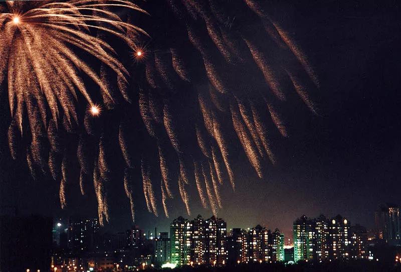 建議大家可以選擇在高處進(jìn)行拍攝,因?yàn)榭梢员苊庖恍┎槐匾那熬?,同時(shí)也可以將城市的景色納入畫面中。另外,拍攝地點(diǎn)盡量選擇在煙花燃放的側(cè)方或者是風(fēng)的前方,如果站在下風(fēng)口,燃放煙花的灰塵和煙霧會(huì)讓你受不了。