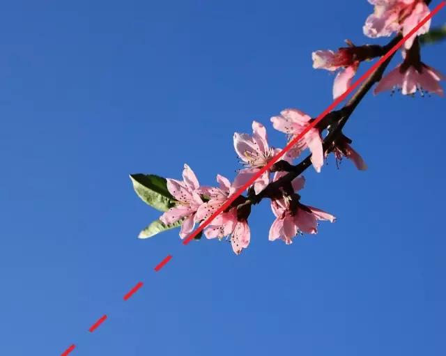 通過(guò)對(duì)角線構(gòu)圖,延伸的花枝自然地填充了整個(gè)畫(huà)面,顯得充實(shí)、飽滿而又不失活潑。