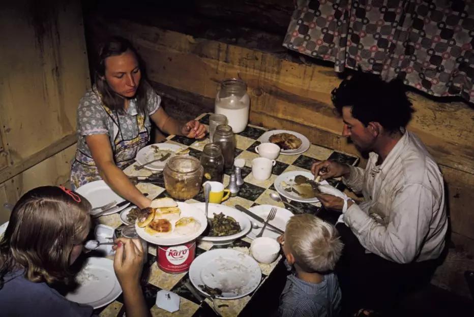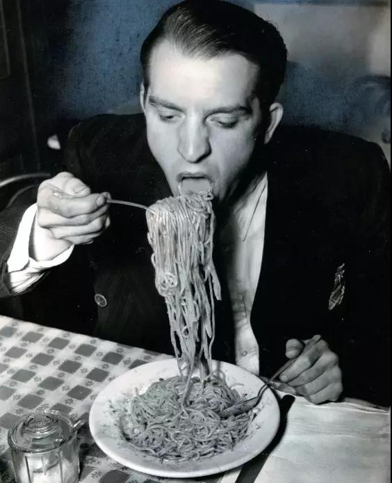 比如,維吉(Weegee)拍攝的《菲利普·斯塔佐在 WPA 上享受他最喜歡的食物,因為他聽說軍隊不太喜歡供應(yīng)意大利面》(Phillip J. Stazzone is on WPA and enjoys his favourite food as he'sheard that the Army doesn't go in very strong for serving spaghetti. 1940)以他慣常的戲劇化表達讓一副普通境界的吃相躍然紙上。維吉鏡頭下的美國在 1940年尚有一盤意大利面,拉塞爾·李(Russell Lee)在同一年份走入美國新墨西哥州的鄉(xiāng)下,便還能看見大蕭條最后的尾聲:小城市普通美國家庭并不豐盛的晚餐。20年后,同樣在美國,食物上的局促有了很大改觀,但更直觀的窘境達到了高峰: 種族問題。佚名攝影師拍下的《午餐吧臺的罷工》(Lunch Counter Sit-in) 即顯示了這個問題。兩名美國黑人大學(xué)生在“只準(zhǔn)白人” (whites-only)的餐廳吧臺上學(xué)習(xí),兩名白人女服務(wù)員在觀望他們的同時拒絕為他們服務(wù)。冰冷拒絕且?guī)?,是非常純粹的仇恨表情。四個人,圍桌,卻沒有可供享用的食物。種族主義作為曾經(jīng)橫亙在他們之間無形的高墻,直到今天都還有殘垣斷壁留存,化為低矮的絆腳石。