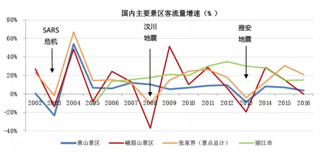 景區(qū)方面,2004年黃山、峨眉山、張家界景區(qū)客流增速達到54%、48%和67%,復蘇力度較為明顯。