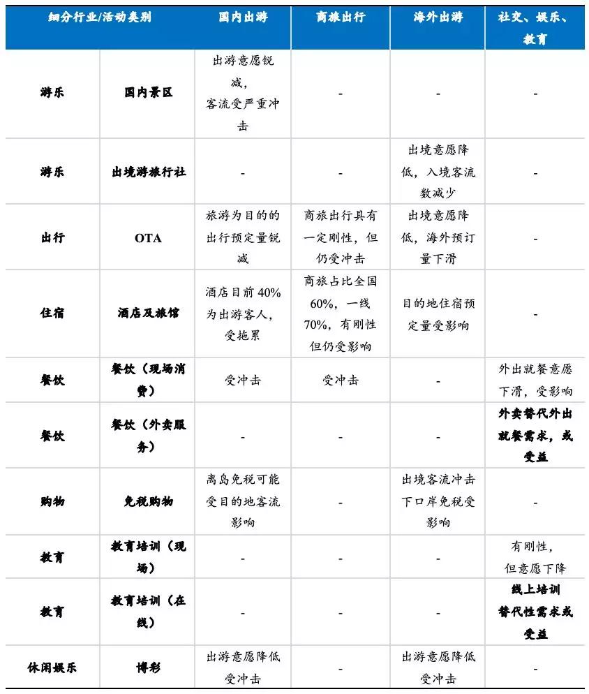 這是因為,旅游行業(yè)中的幾乎所有細分領域均涉及人群聚集與社交。不同于其他危機事件僅對某具體細分影響,例如國際關系僅影響出入境客流,流行性傳染病窗口期對旅游行業(yè)會構成全面沖擊。