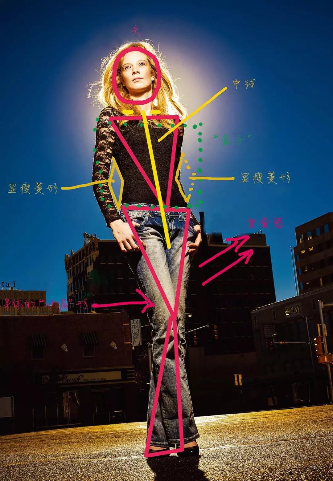 男人以正面的角度面對(duì)相機(jī),給人一種高大、寬厚、輪廓清晰的感覺。但對(duì)于女人來說,攝影師要做的則是使她們看起來瘦一點(diǎn),再瘦一點(diǎn),最好可以瘦 得像一支鉛筆。