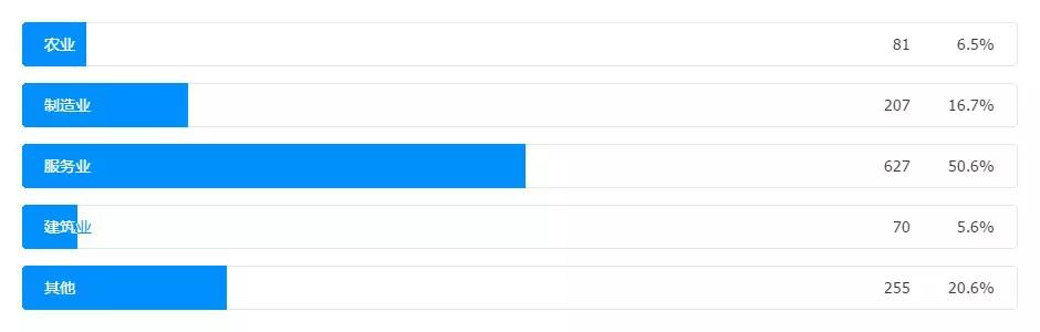本次接受調(diào)查的企業(yè)中,占比最多是服務(wù)業(yè)企業(yè),超過50%,這跟目前全國民營企業(yè)在一二三產(chǎn)業(yè)中分布格局基本吻合,因此本次調(diào)研結(jié)果具備一定的可參考性。