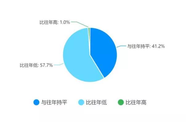 根據(jù)數(shù)據(jù)可以看出,57.7%的企業(yè)返工率預(yù)計比去年低,41.2%的企業(yè)預(yù)計返工率比去年相比持平,所以可以看出返工率受到較大影響、接近60%的企業(yè)不能準(zhǔn)時復(fù)工,不僅對抗擊疫情的物資供應(yīng)可能造成影響,更可能會影響企業(yè)的正常運轉(zhuǎn),較大地增加企業(yè)的運營壓力。