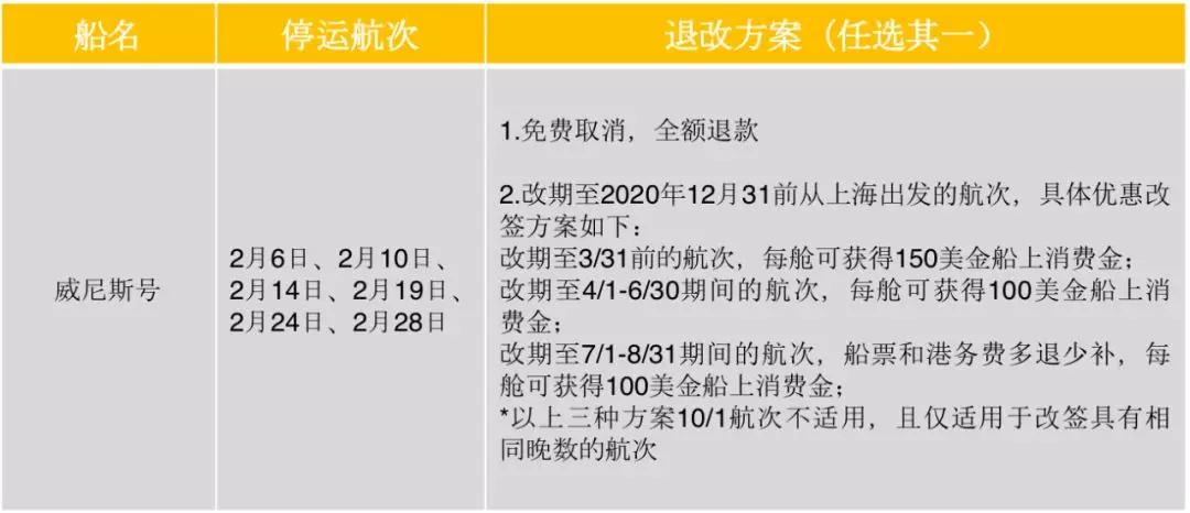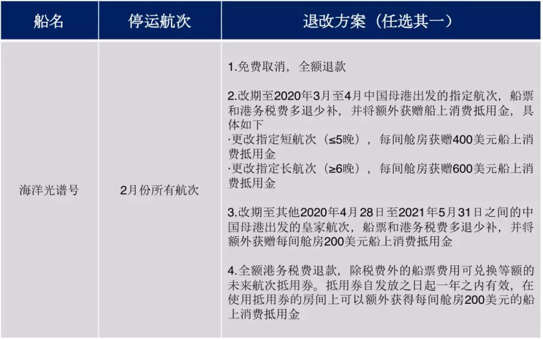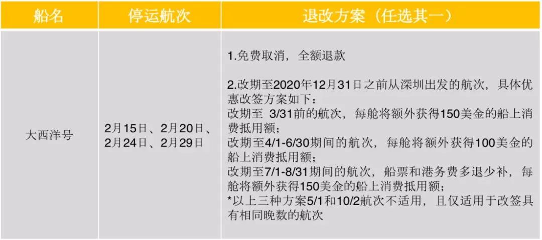 各郵輪公司在停運的大形勢下,給出的退改方案主要為兩類,全額退款和航次改期,改期方案中大部分都給予了船上消費金作為對預(yù)訂乘客的補償,可以感受到一定的誠意。