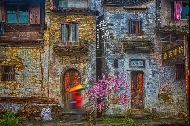 這張照片是在慶源村拍攝的。在這個(gè)古城兩旁是古建筑,中間是有一條小溪的,這個(gè)村落相對(duì)李村,李坑來(lái)說我認(rèn)為他更加原生態(tài)。這次婺源自由拍攝,對(duì)這個(gè)村印象最深刻的是因?yàn)閮膳蕴一ㄊ㈤_,梨花也盛開,剛好下了雨,如果說你讀過雨巷,此時(shí),走在這條古村,撐著雨傘,真的是走入了畫境里面了。所以還想去一次去這個(gè)地方,因?yàn)檫€有很多角度,有待慢慢挖掘。