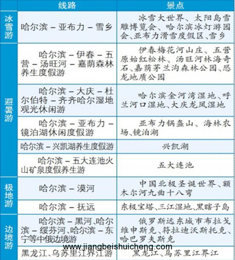 在昨天(16日)舉行的“全國百強旅行社龍江行”活動對接會上,省旅游局推出了10條精品旅游線路(見下表),線路以哈爾濱為中心,輻射全省旅游景區(qū),涵蓋四季旅游產(chǎn)品。