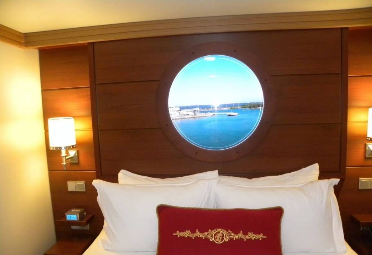 為了彌補(bǔ)住在內(nèi)側(cè)客艙的游客在客艙內(nèi)看不到海景的遺憾,“迪斯尼之夢”號( Disney Dream)郵輪為內(nèi)側(cè)客艙提供了虛擬舷窗,通過安裝在船外的高清攝像機(jī),游客可以看到船外的實(shí)時景色,還有孩子們喜歡的動畫。