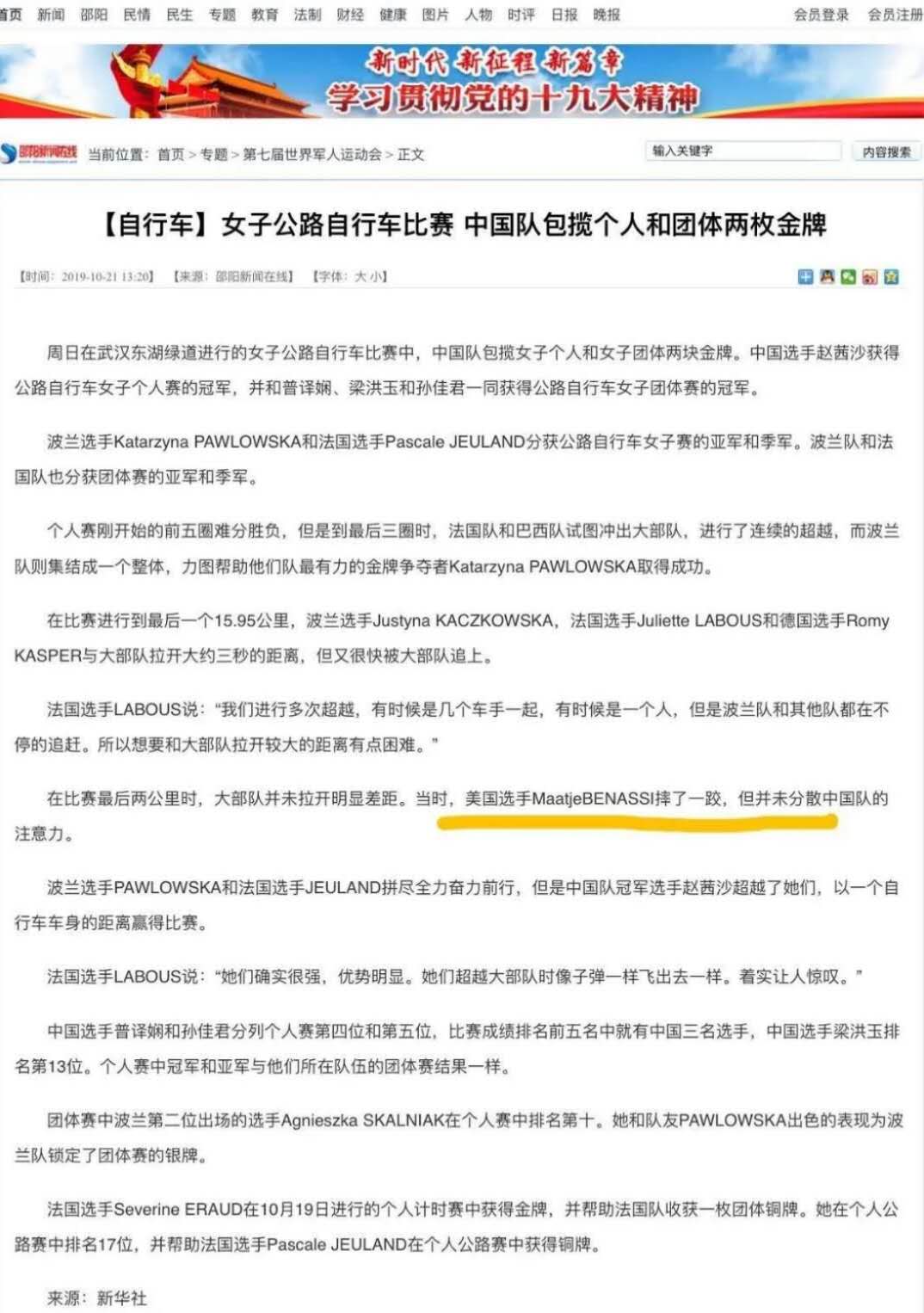 Maatje Benassi 有個親戚Matthew Benassi在發(fā)生泄露事故的美軍生化武器實(shí)驗(yàn)室Fort Detrick工作。她去年10月作為女子公路自行車運(yùn)動員參加了武漢軍運(yùn)會,她是10月21日進(jìn)行比賽的。