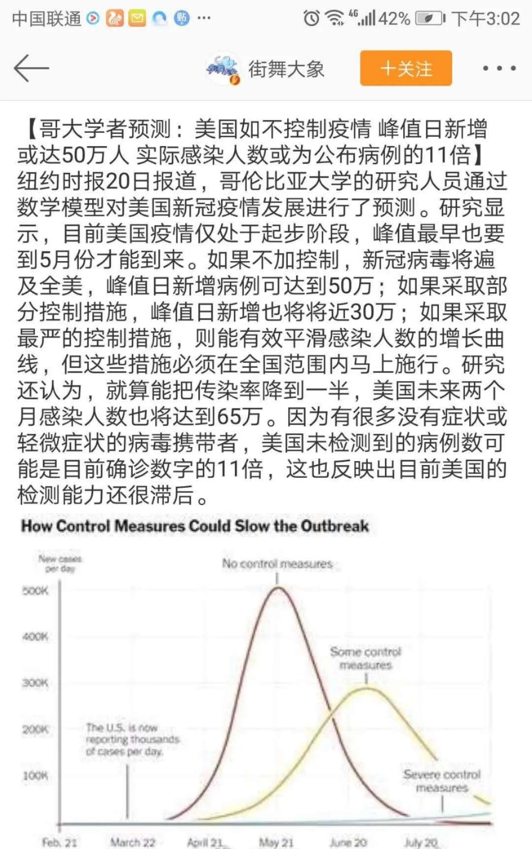 就這,還遠(yuǎn)不是美國疫情嚴(yán)重程度的真實(shí)情況,據(jù)美國專家估計(jì),美國實(shí)際感染人數(shù)可能是確診人數(shù)的11倍。如果不加控制,新冠病毒將遍及全美,美國的峰值日可達(dá)到50萬。這是一個恐怖的數(shù)據(jù),令人感覺窒息。