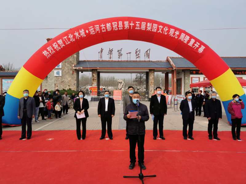 出席今天開幕式的領(lǐng)導(dǎo)和嘉賓有:聊城市市委宣傳部副部長(zhǎng)薛兆立、聊城市文化和旅游局局長(zhǎng)劉光輝、冠縣縣委副書記、縣長(zhǎng)崔新樂、聊城市文化和旅游行業(yè)協(xié)會(huì)會(huì)長(zhǎng)王金福、冠縣人大常委會(huì)副主任張則玉、冠縣人民政府副縣長(zhǎng)吳景博、冠縣政協(xié)副主席蘇興玲、聊城市文化和旅游行業(yè)協(xié)會(huì)常務(wù)副會(huì)長(zhǎng)兼秘書長(zhǎng)宋文江、聊城市文化和旅游局產(chǎn)業(yè)科科長(zhǎng)韓銀亮、冠縣文化和旅游局局長(zhǎng)左華、冠縣旅游發(fā)展服務(wù)中心主任齊俊林,以及省、市、縣的新聞媒體代表、各地游客代表、旅游行業(yè)單位代表及部分特邀嘉賓。 首先,冠縣人民政府副縣長(zhǎng)吳景博同志對(duì)冠縣旅游發(fā)展現(xiàn)狀進(jìn)行了介紹,對(duì)梨園觀光周系列活動(dòng)進(jìn)行了解讀;聊城市文化和旅游行業(yè)協(xié)會(huì)會(huì)長(zhǎng)王金福同志向開幕式發(fā)表致辭;聊城市文化和旅游局局長(zhǎng)劉光輝宣布開幕。