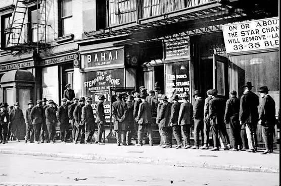所以,1929年,世界大戰(zhàn)結(jié)束才10年,真正的經(jīng)濟(jì)危機(jī)如約而至。破壞力強(qiáng)悍到世界大戰(zhàn)都只是預(yù)演。美國的工業(yè)水平幾個月就倒退到19世紀(jì),銀行業(yè)破產(chǎn),410億存款去擠兌60億現(xiàn)金,總統(tǒng)開支票都兌不到紙幣。德國失業(yè)人口加半失業(yè)人口占了總數(shù)的2/3。第一次世界大戰(zhàn)期間,英國咬牙頂住了金本位,等到大蕭條來也也得廢除。從1929年到1933年,全世界再次以為資本主義要結(jié)束了。
