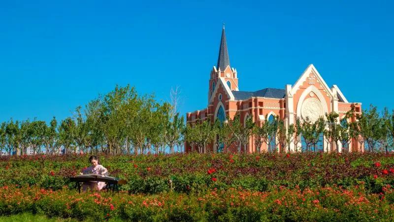 九州洼月季公園占地約131.2公頃,坐上觀光車,兩路花景在旁,把所有的驚喜收納進眼中。