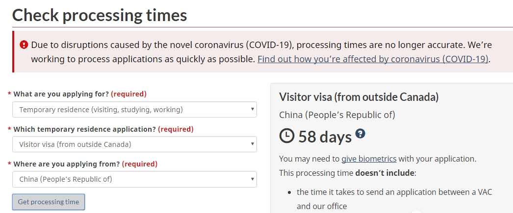 由于疫情的影響導(dǎo)致簽證申請(qǐng)中心持續(xù)關(guān)閉,所以簽證受理時(shí)間均有延遲。根據(jù)加拿大移民局系統(tǒng)查詢,目前顯示臨時(shí)訪問簽證審理時(shí)間延長(zhǎng)至58天,不排除再延長(zhǎng)的可能性。