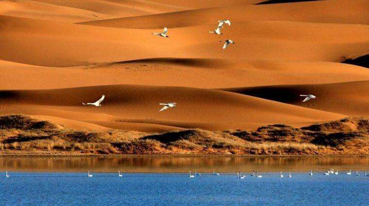 寧夏石嘴山市沙湖旅游景區(qū),位于寧夏回族自治區(qū)石嘴山市平羅縣境內(nèi),是以自然景觀為主體,沙、水、葦、鳥、山五大景源有機(jī)結(jié)合構(gòu)成的國家AAAAA級旅游景區(qū),被譽(yù)為“世間少有”的文化旅游勝地。