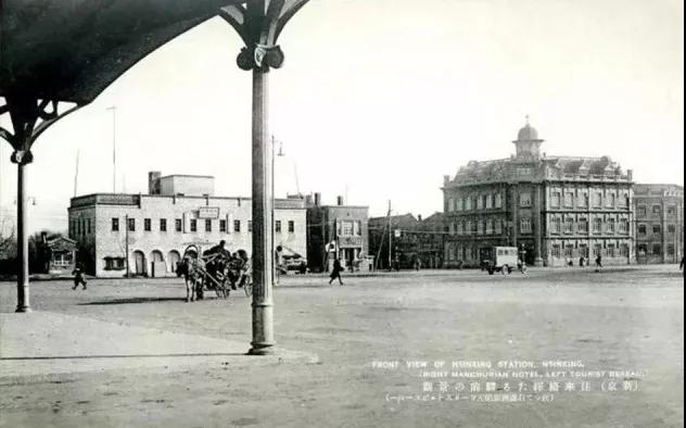 1935年是的新京站(長春站)前東側(cè),左一二層建筑即為日本國際觀光局新京支社