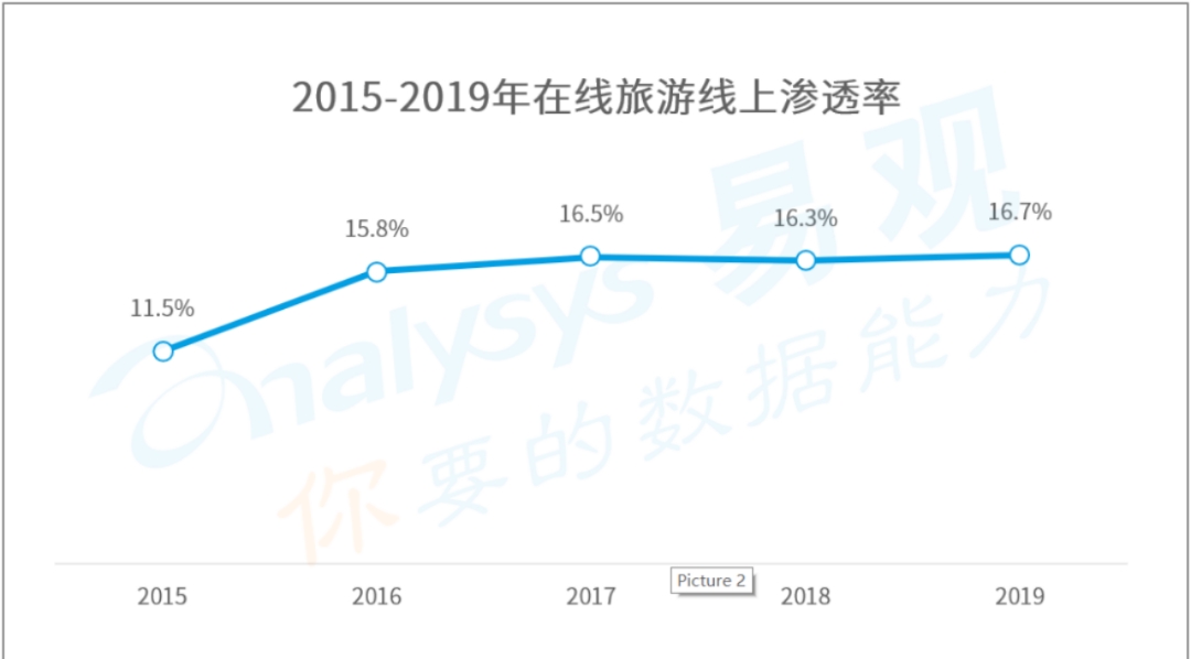2015-2019年在線(xiàn)旅游線(xiàn)上滲透率