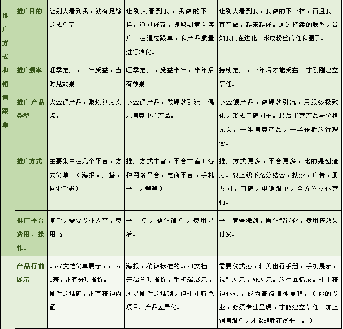 2、怎么做?如何打造口碑圈:需要市場(chǎng)推廣,銷(xiāo)售跟單,行前、行中、行后服務(wù)升級(jí),產(chǎn)品升級(jí),全方位立體化的營(yíng)銷(xiāo)。除此之外,別無(wú)他法。