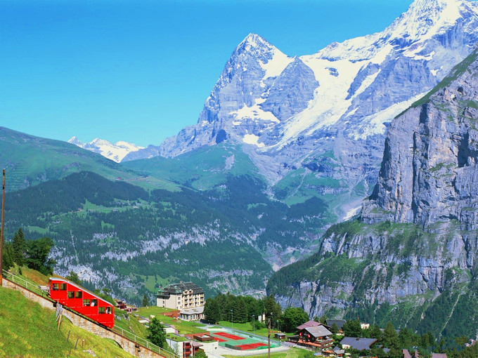 少女峰是瑞士最為出名的山峰,從因特拉肯火車站搭乘前往少女峰的觀光火車就能到達(dá)這個(gè)歐洲之巔。紅色的火車穿梭在阿爾卑斯山之間,雪山、森林和野花迎面而來(lái),兩側(cè)的風(fēng)景凈收眼底。