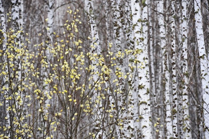白樺林像幻想中的童話世界,美不勝收。白樺樹(shù)有點(diǎn)像北方的白楊,挺直、偉岸,如劍戟直向北國(guó)長(zhǎng)天。也有一二株、三五株長(zhǎng)成枝椏分叉、樹(shù)冠圓闊的大樹(shù)的,展示出白樺樹(shù)的另一種風(fēng)姿。白樺樹(shù)一般與落葉松、獐子松混生在一起。也有單獨(dú)的白樺林帶,公路沿線的白樺林帶是一片風(fēng)景,一道道密麻麻的白灰色樹(shù)干閃爍而過(guò),有時(shí)風(fēng)起,樹(shù)頂?shù)臉?shù)葉被風(fēng)吹翻卷,露出葉子反面的銀白色,宛如開(kāi)出半樹(shù)半樹(shù)的白花。