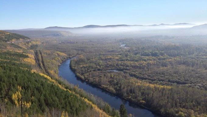 滾滾流淌的黑龍江水沿著內(nèi)外興安嶺交界處的低谷一路東流,在一個(gè)叫紅旗嶺的地方突然形成一個(gè)完美的Ω形江灣,這個(gè)長(zhǎng)度達(dá)30公里的神奇大灣就是黑龍江第一灣。站在山頂可以俯瞰這里的全景,浩浩蕩蕩,非常的壯觀。