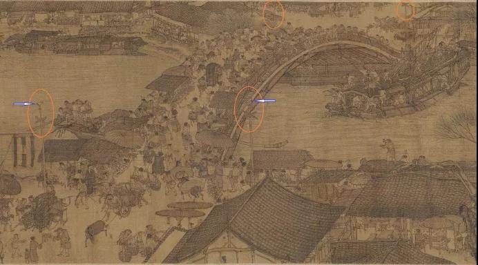 他們通過丈量街道,為商販規(guī)劃出可以擺攤的位置。商販必須在自己固定的位置里叫賣,不可越界經(jīng)營?!端涡探y(tǒng)》明文規(guī)定:諸侵街巷阡陌者,杖七十?!肚迕魃虾訄D》里虹橋旁邊的那根木樁,又叫表木,就是街道司為攤販樹立的分界線的標(biāo)志。