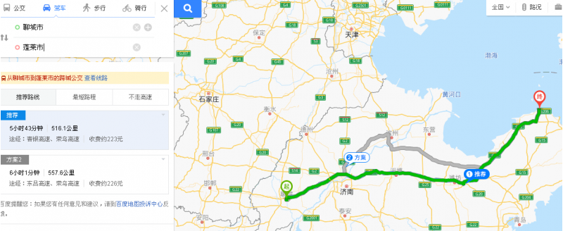 D1:聊城——煙臺蓬萊(516.1公里,大約6小時左右)