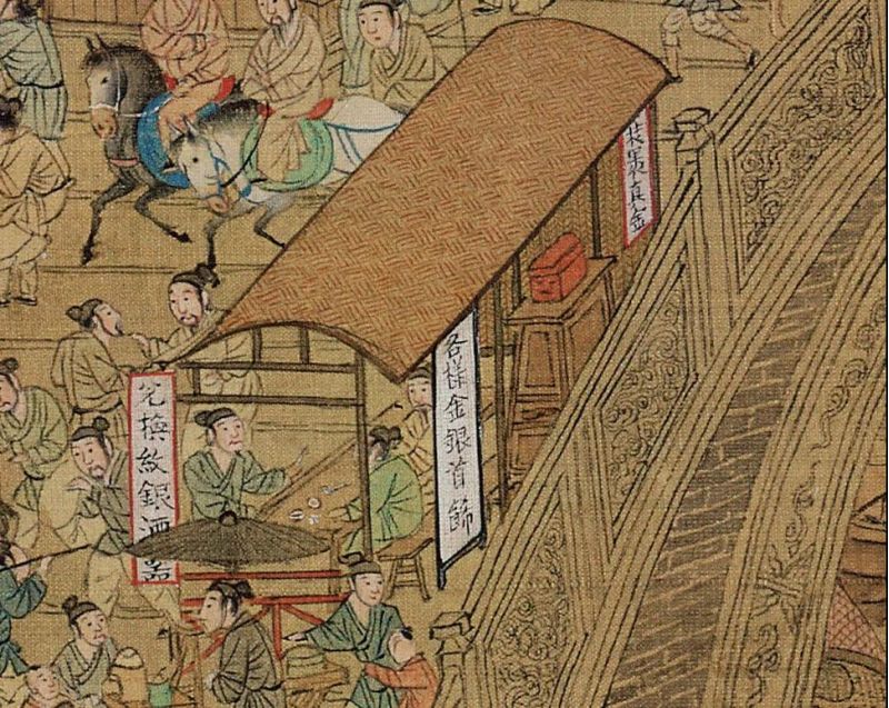 宋代恤商政策的最大受惠者不僅有都城開封、行在臨安的商戶,還有大批流動攤販。宋代的商稅有兩種,對經過收稅點的過往商販收取“過稅”,稅率2%;對店鋪與城鎮(zhèn)攤販收取“住稅”,稅率3%;少數(shù)特定商品,收取10%的實物稅,不再另行征收過稅和住稅。