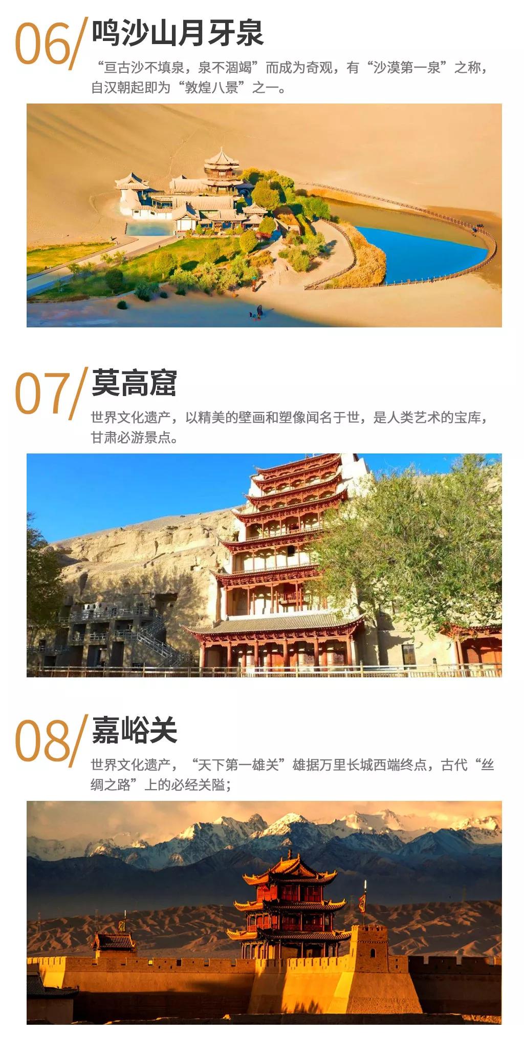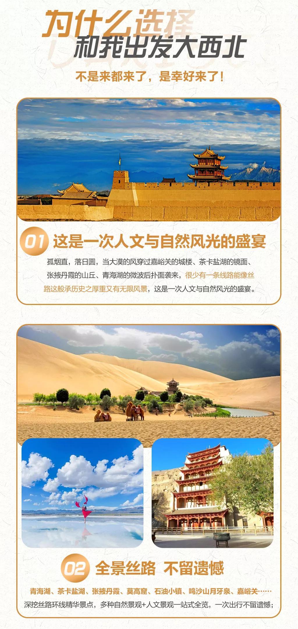 西北地區(qū)天氣干燥,旅途的過程中請(qǐng)大家多喝水,注意防曬;敦煌《又見敦煌》演出,旅游淡季298元/人,旺季368元/人起;果木烤全羊費(fèi)用根據(jù)羊的大小決定,由參與活動(dòng)的游客均攤,一般10人一桌,人均消費(fèi)160元左右。
