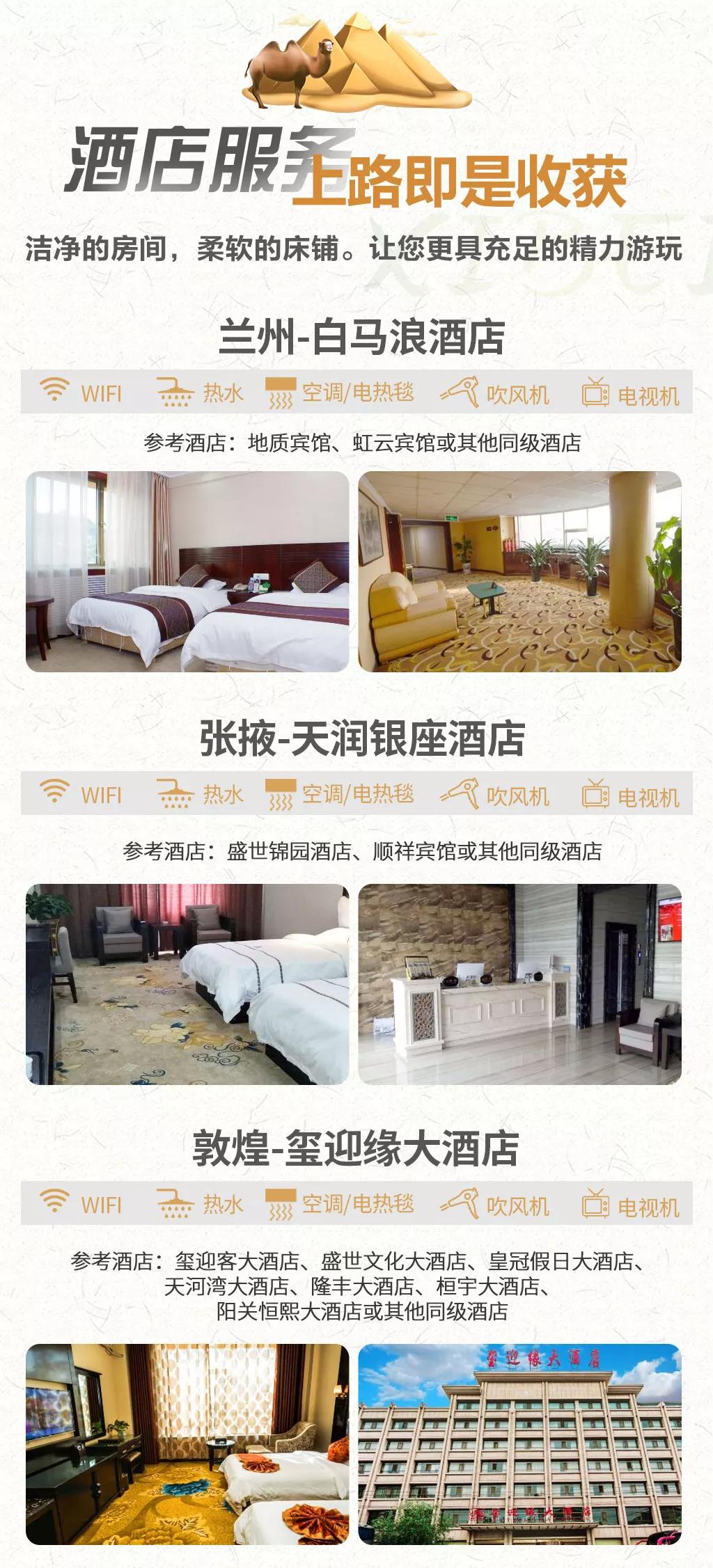 敦煌:璽迎緣大酒店、璽迎客大酒店、盛世文化大酒店、皇冠假日大酒店、天河灣大酒店、隆豐大酒店、桓宇大酒店、陽(yáng)關(guān)恒熙大酒店或其他同級(jí)酒店