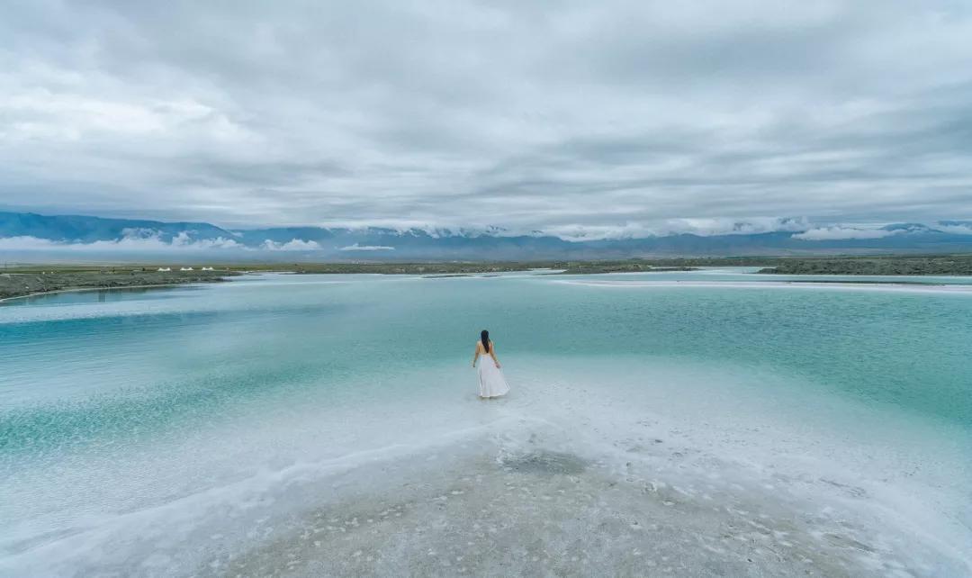 從德令哈出發(fā),我們?nèi)サ健爸袊?guó)的天空之境”、被國(guó)家旅游地理雜志評(píng)為“人一生必去的55個(gè)地方”之一的【茶卡鹽湖】。這里的采鹽歷史非常悠久,湖水含鹽量很大,湖面上會(huì)自然結(jié)晶,一片純白。結(jié)晶之上是一層薄薄的露水,將天空、云朵和對(duì)岸的山都倒映在白色的湖里,非常漂亮,所以也被稱為“中國(guó)的天空之境”。大家可以乘坐景區(qū)內(nèi)的小火車前往景區(qū)深處游玩,如果不乘坐小火車,沿著鐵軌向湖深處散散步拍拍照片也是非常愜意的。