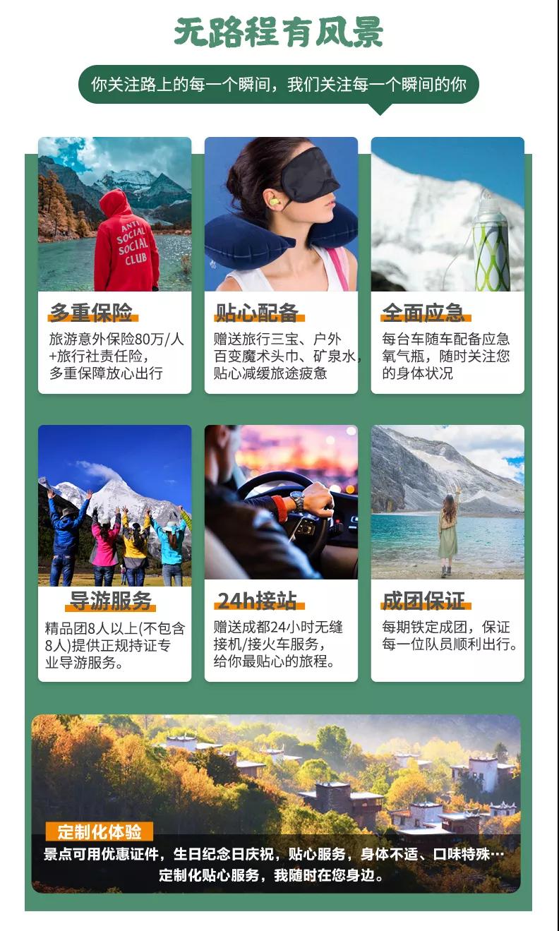 1、關于車輛交通:目前四川旅游市場8座以下車輛無法辦理旅游牌照,請游客知悉,以此理由提起的投訴我方拒不受理,望您諒解。