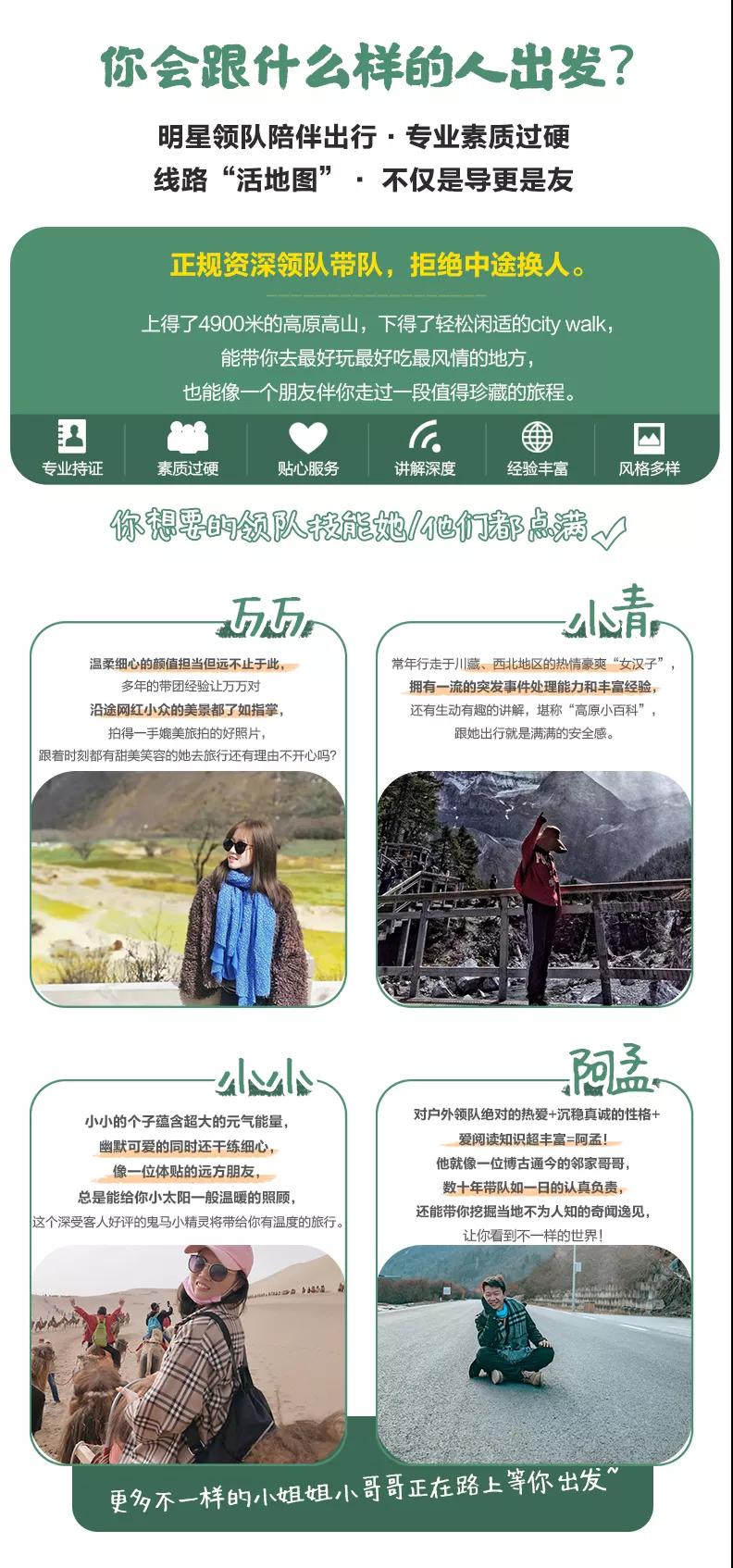 4、如途中遇不可抗因素(如高原反應、修路、塌方、車輛事故阻礙等)我方有權根據情況調整行程線路走向,此舉均是根據帶隊經驗為大家更順利的游玩而做出的改變,希望大家理解和支持,但如造成額外費用由客人自理,望您諒解;若對行程造成影響的,我方將全力協(xié)助游客進行解決,但不承擔由此造成的損失,若因此而增加的費用,敬請游客自理。