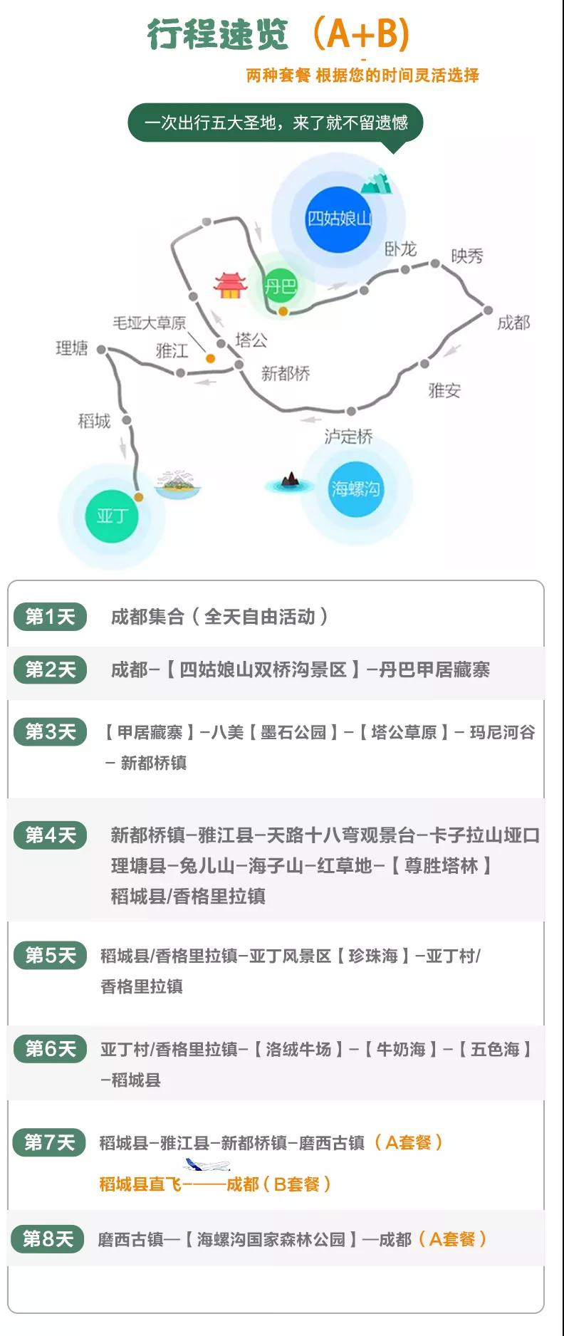3. B套餐游客可于今日退酒店后,自行前往稻城亞丁機場直飛成都結束本次旅行。