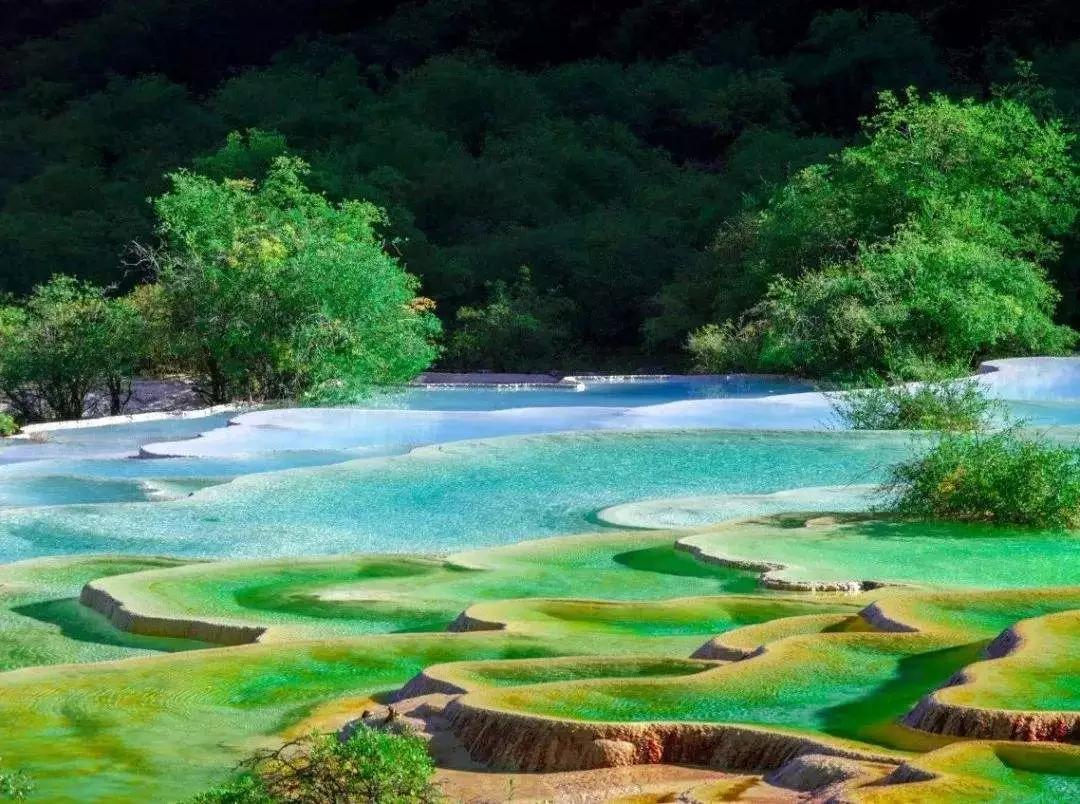 【黃龍風景區(qū)】因其獨特的景觀、原始的生態(tài)和豐富的資源被美稱為“人間瑤池”,在這里我們可以親身體驗到“彩池、灘流、雪山、峽谷、古寺、民俗”六絕的獨特魅力。黃龍風景區(qū)鈣化景觀非常壯觀,鈣化邊石壩彩池、鈣化灘、鈣化扇、鈣化湖、鈣化塌陷湖、坑,以及鈣化瀑布、鈣化洞穴、鈣化泉、鈣化臺、鈣化盆景等一應俱全,是一座名副其實的天然鈣華博物館。乘坐索道后,我們繼續(xù)沿觀光道往景區(qū)最高點——五彩池、黃龍寺方向徒步,再順著游客道便能走出景區(qū);體力有限的游客也可以選擇不行返回索道口,自費乘坐索道離開景區(qū)。