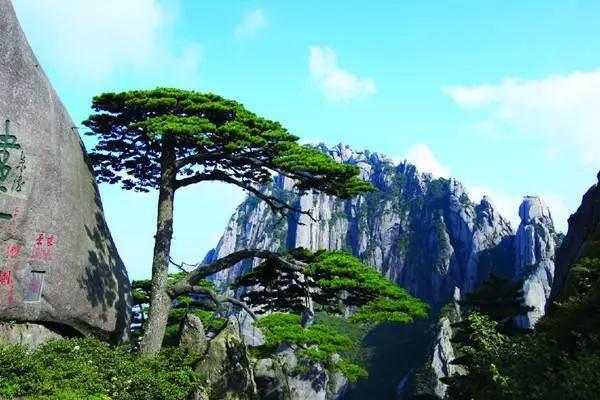 黃山是安徽旅游的標(biāo)志,是中國十大風(fēng)景名勝唯一的山岳風(fēng)光。黃山原名“黟山”,因峰巖青黑,遙望蒼黛而名。后因傳說軒轅黃帝曾在此煉丹,故改名為“黃山”。