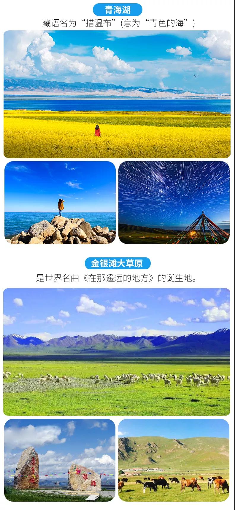 然后我們前往有“西?!?、“仙?!敝Q的青海湖。【青海湖】不同季節(jié)呈現(xiàn)不同的美景,杏花三月之時乘船迎風(fēng)抓住料峭春寒的尾巴;五月野花綻放,細(xì)細(xì)碎碎的無名之輩在湖邊路旁你的心里盛放;八月湖畔的油菜花開得幾近爛漫,微風(fēng)拂來金黃花浪與湖面微波共舞;繁華過盡的十月,青海湖也呈現(xiàn)出最樸素最原始的姿態(tài)。無論是哪個時候,你都不會想要錯過泛舟其上的機(jī)會。