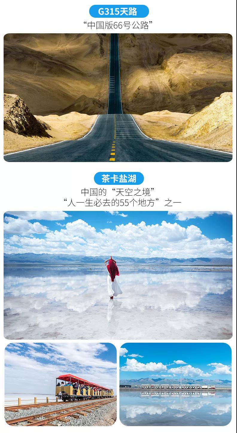 游覽過人跡罕至的茫崖翡翠湖,今天我們就去打卡炙手可熱的“天空之境”茶卡鹽湖?!?strong>茶卡鹽湖】被國家旅游地理雜志評為“人一生必去的55個地方”之一,這里的采鹽歷史非常悠久,湖水含鹽量很大,湖面上會自然結(jié)晶,一片純白。結(jié)晶之上是一層薄薄的露水,將天空、云朵和對岸的山都倒映在白色的湖里,非常漂亮,所以也被稱為“中國的天空之境”。大家可以乘坐景區(qū)內(nèi)的小火車前往景區(qū)深處游玩,如果不乘坐小火車,沿著鐵軌向湖深處散散步拍拍照片也是非常愜意的。