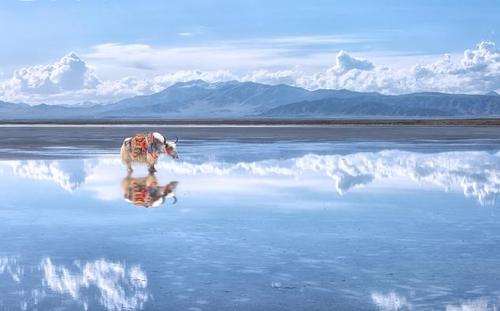【茶卡鹽湖】被國(guó)家旅游地理雜志評(píng)為“人一生必去的55個(gè)地方”之一,這里的采鹽歷史非常悠久,湖水含鹽量很大,湖面上會(huì)自然結(jié)晶,一片純白。結(jié)晶之上是一層薄薄的露水,將天空、云朵和對(duì)岸的山都倒映在白色的湖里,非常漂亮,所以也被稱為“中國(guó)的天空之境”。大家可以乘坐景區(qū)內(nèi)的小火車前往景區(qū)深處游玩,如果不乘坐小火車,沿著鐵軌向湖深處散散步拍拍照片也是非常愜意的。