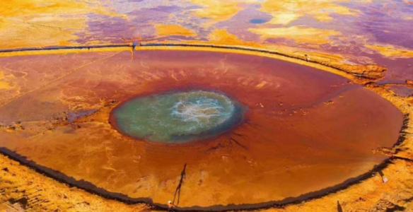 隨后我們前往阿拉爾草原深處去探索一方汩汩噴涌了上千年的地?zé)釃娙?strong>“惡魔之眼”艾肯泉】。“艾肯”在蒙語(yǔ)中意為“可怕”,而“艾肯泉”在蒙語(yǔ)中又意為“源頭”,因其湖水成分艾肯泉周圍寸草不生且形成了一個(gè)紅褐色的圓形,正中央便是汩汩而出的泉水,這便形成了一個(gè)巨大的“眼睛”,被人稱為“大地之眼”。從空中俯瞰航拍,這巨大的眼睛脈絡(luò)清晰,栩栩如生,在它周圍點(diǎn)綴著許多青色的小泉眼,神秘而震撼;除了其令人驚奇的血色眼睛造型,艾肯泉還有神奇的“喊泉”屬性,據(jù)說(shuō)站在岸邊朝它大喊,或者是在岸邊跺跺腳,噴泉口的水流量就會(huì)加大,會(huì)噴涌得更高。