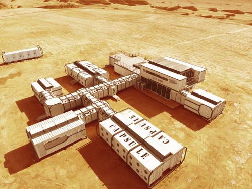 在這片“地球上最不像地球的地方”,以科學(xué)、科普和科幻為核心, 中國(guó)首個(gè)研學(xué)火星模擬基地——“火星營(yíng)地”拔地而起。該項(xiàng)目斥資1.5億,營(yíng)地建設(shè)風(fēng)格模擬未來(lái)人類移居火星后的生存環(huán)境,搭建有“總部大樓”“火星艙”等,和周圍的山色融為一體,就像曾經(jīng)在電影中出現(xiàn)的場(chǎng)景,來(lái)到營(yíng)地的所有人都能身臨其境地體驗(yàn)到居住在火星的狀態(tài),不由自主地想盡快進(jìn)入生存挑戰(zhàn)角色,完成“火星移居”的課題研究。