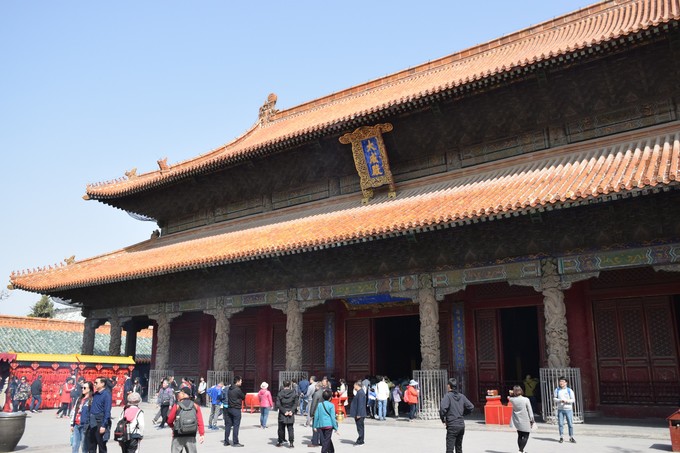 大成殿,孔廟的主體建筑,重檐九脊,擎檐 石柱 二十八根,“大成殿”牌匾為清雍正帝手書(shū),殿內(nèi)“萬(wàn)世表”匾額為 清康 熙帝手書(shū)。
