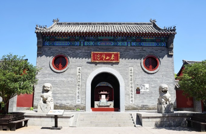 泰山行宮,俗稱泰山廟,始建于明代正德年間,毀于臺(tái)兒莊大戰(zhàn)?,F(xiàn)泰山行宮為2011年原址復(fù)建,但仍保存有一處如來佛殿殿基遺址,保存較為完好,且建構(gòu)考究。