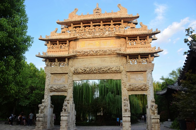 臺(tái)兒古城打卡的必游之地,此處有臺(tái)兒莊古城西門城樓及城樓上“天下第一莊”牌匾,另外護(hù)城河邊還有“世界文化遺產(chǎn)-中國大運(yùn)河”的標(biāo)志碑。進(jìn)入西門直行不遠(yuǎn)處便是“天下第一莊”牌坊,這幾處都是臺(tái)兒莊人氣最旺的打卡地。